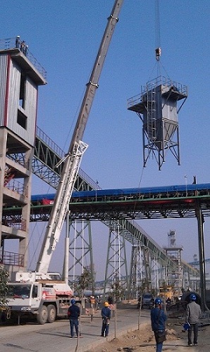 湖北襄陽2T生物質鍋爐除塵器吊裝現場